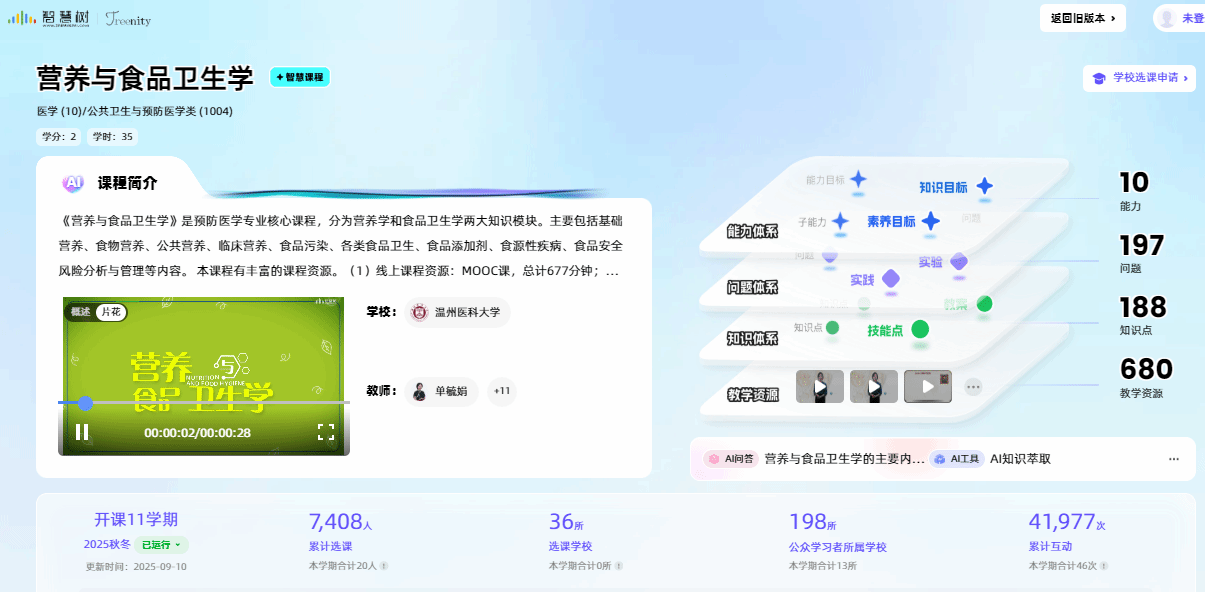 党的二十大报告提出树立“大食物观”、大力推进“国民营养计划”和“健康中国合理膳食行动”,结合《教育强国建设规划纲要(2024-2035年)》等精神要求,深化人工智能赋能教育教学改革创新,打造集知识智能化管理、内容生成式生产、教学人机协同交互于一体的“智慧课程”,做到一体化教材资源升级,慕课西行课程辐射升级,教学实践基地建设升级,进一步提升新时代卓越人才自主培养能力。