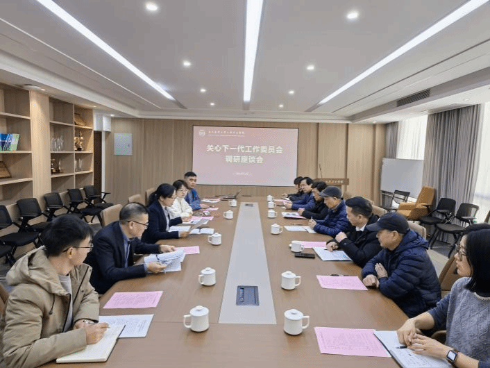 校关工委“银耀av在线看”志愿服务团团长杜友爱、老干部讲师团团长李健、老干部教科研顾问团团长周健民与我院关工委委员就关工委建设开展座谈交流。