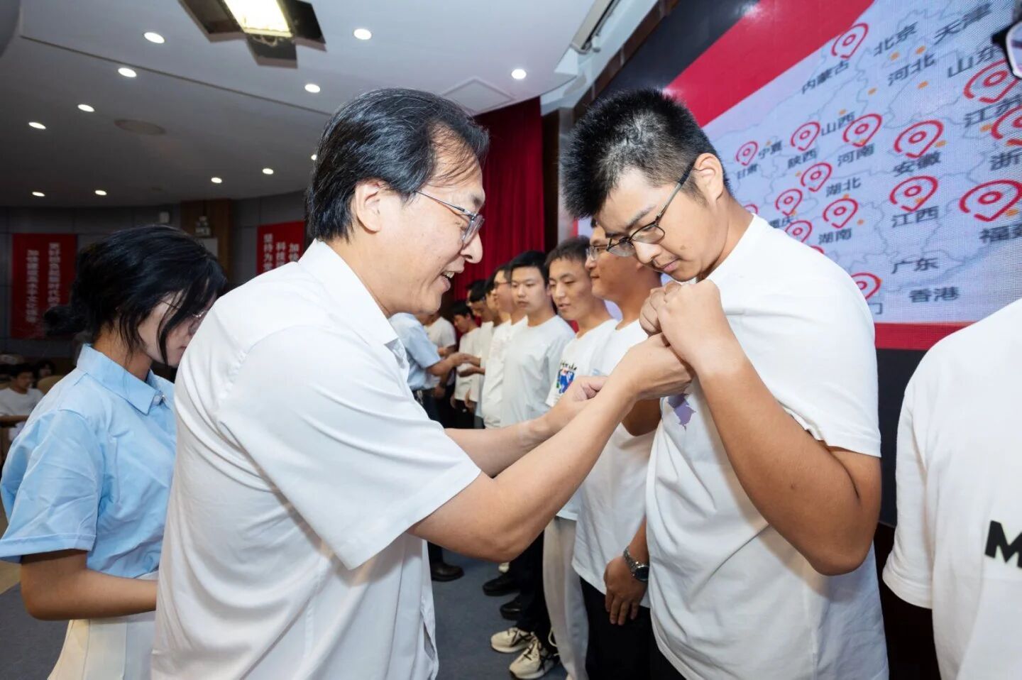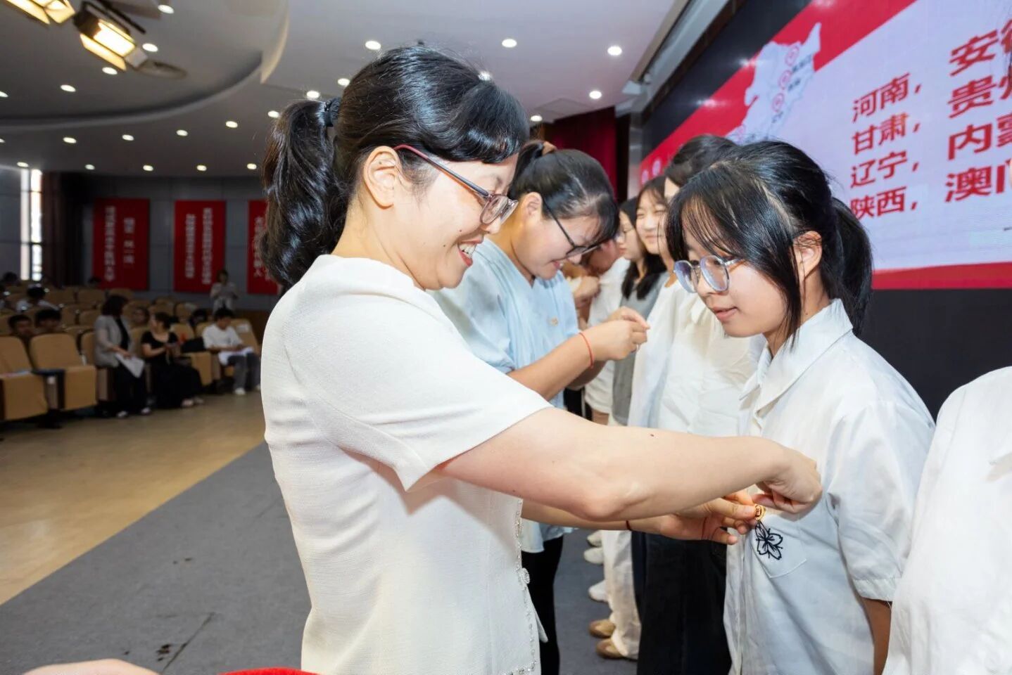 领导与导师们一同为他们佩戴院徽,寓意着五湖四海的学子汇聚于此,从此刻起,就是骄傲的温医人、公卫人。