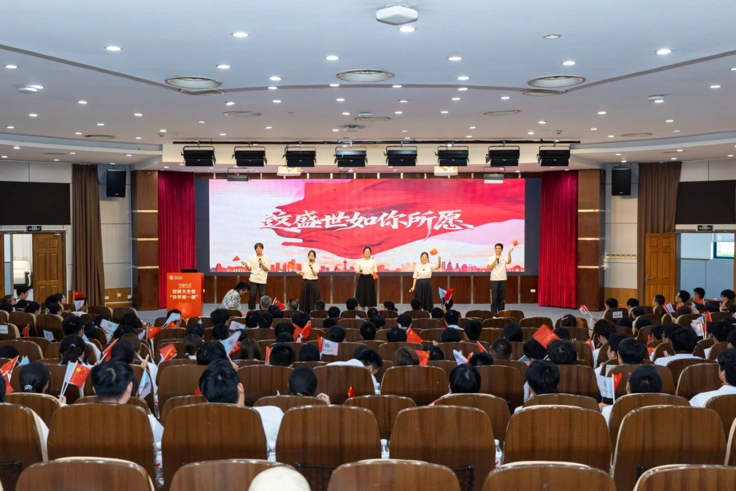 现场全体师生重温了振奋人心的九三阅兵仪式,并伴随国旗护卫队步入台前,共唱国歌,共同铭记国家发展的伟大成就,要将个人理想和强国建设紧密结合。