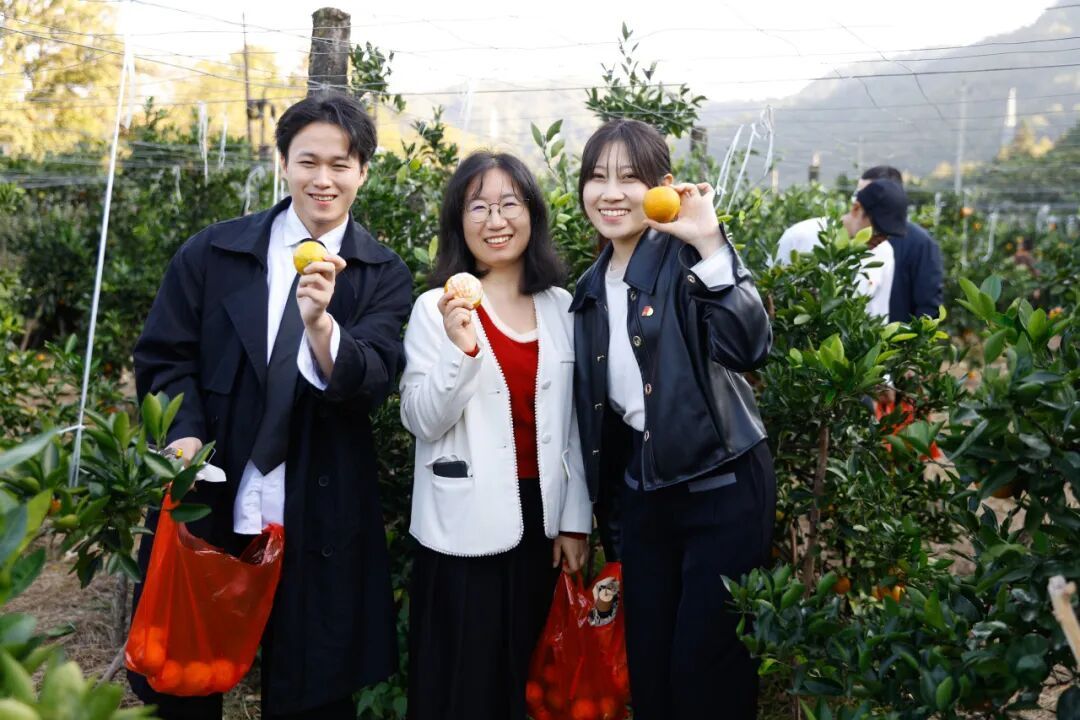 队伍又来到橘子园,大家兴致勃勃穿梭于金灿灿的桔林间,通过亲手采摘、亲子互动,不断体验丰收乐趣,脸上洋溢着甜蜜的笑容。