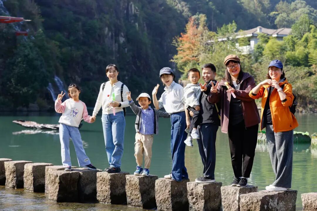 秋游队伍首先来到永嘉书院,正值11月份,永嘉书院银杏金黄、枫叶如火。大家漫步凤凰渡,泛舟碧波;登临水心塔,纵览山色;跨越百米碇步,欢声笑语;仰望金谷瀑飞泻,心旷神怡。职工们沉醉于山水之美,尽享秋日闲暇,喜悦之情溢于言表。